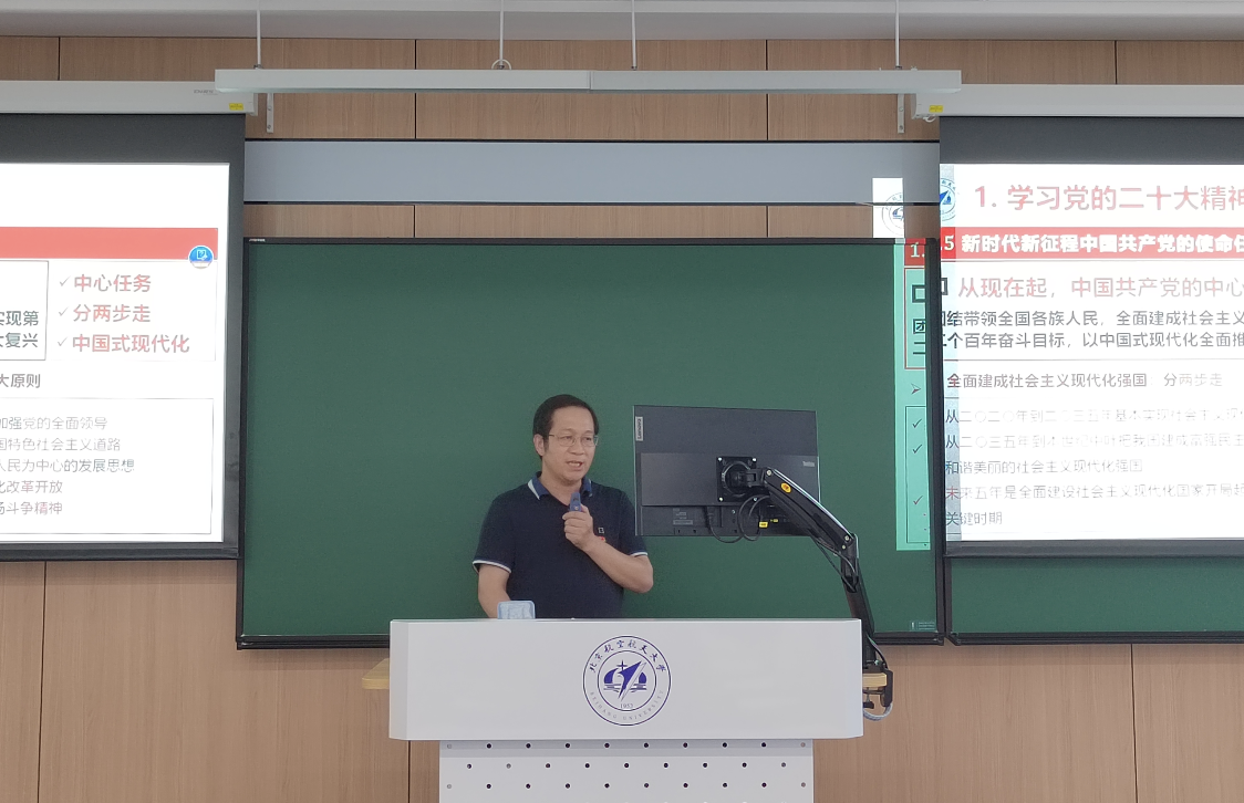 本次专题党课,郭洪波带领教师党员重温党的二十大精神,学习“学思想、强党性、重实践、建新功”的主题教育总要求,回顾主题教育相关工作,完善“大思政”工作格局,为学院加强一流学科建设、推进新时代人才培养高质量发展凝心铸魂。