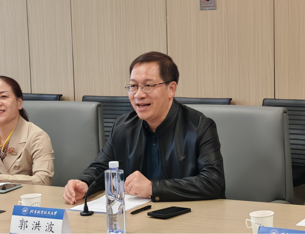 首先,郭洪波代表北航材料学院致欢迎辞,对来访团队表示热烈欢迎,并简要介绍了学院的发展定位与党建科研工作理念。随后,西安航发动力公司(简称西航动力)热表中心党委书记毛新峰介绍了西航动力的基本情况,西航动力是我国大型航空发动机研制生产基地,先后研制生产了涡轮喷气发动机、涡轮发电装置、涡轮风扇发动机、燃气轮机,创造了中国的航空、航海、航天、核工业和国民经济建设的众多奇迹。毛新峰感谢北航材料学院对西航动力及热表中心多年来的支持,强调了党建工作在推动科技创新中的引领作用,并表达了与北航材料学院深度合作的期待。
