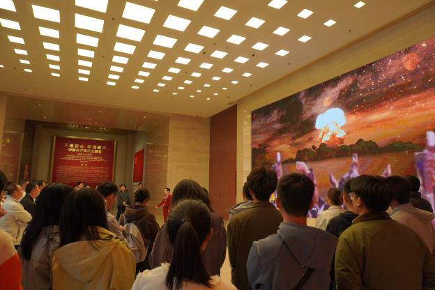 “党史知识接龙”活动在车程中预热了学习氛围,营造出庄重活跃的党日氛围。抵达中国共产党历史展览馆后,师生们在讲解员引领下依次参观了五大历史主题展厅,深入了解党领导中国人民不断夺取胜利的伟大历程。